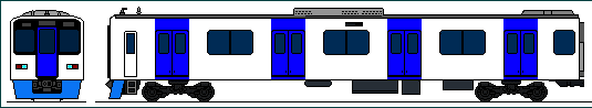 塗装は、白地にドア部にブルーが入るというものです。消費電力低減のために今後界磁添加励磁制御化が進められる予定で、2001年導入の電動車14両は当初から改造されています。